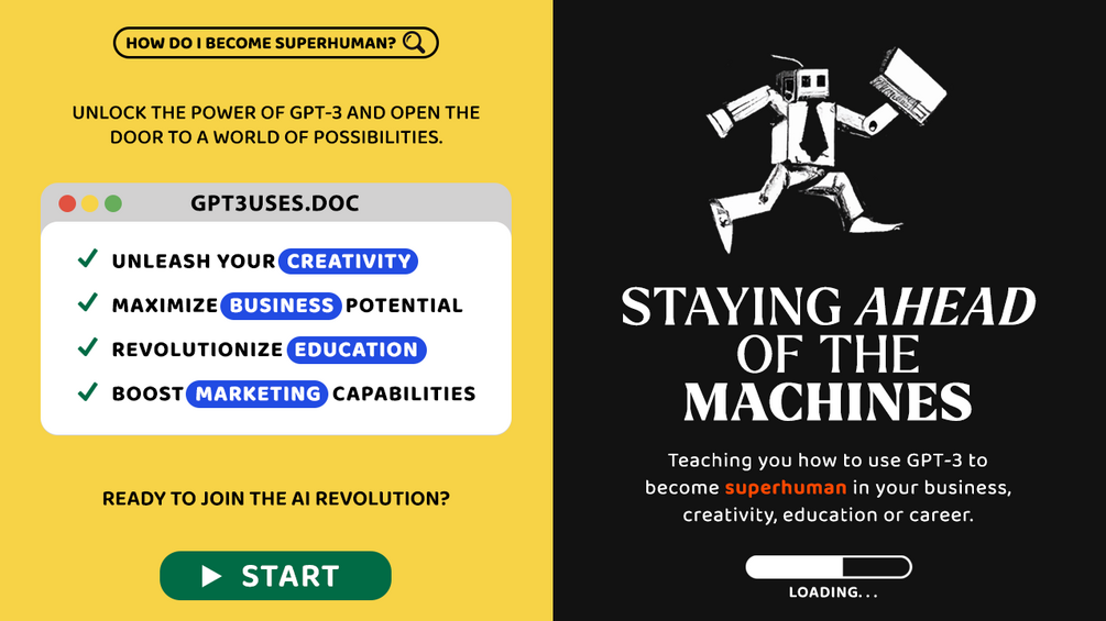 Are you human? Do you struggle with writer's block or finding new ideas? Let me show you how to use GPT-3, a powerful AI assistant, to help you become a better writer, thinker and doer. In this course, you'll learn how to use GPT-3 to brainstorm ideas, write at superhuman speeds, and improve your workflow. Don't wait out on this opportunity to take your creativity to new heights with the help of this bleeding edge tech. Enroll now and unlock your full potential.